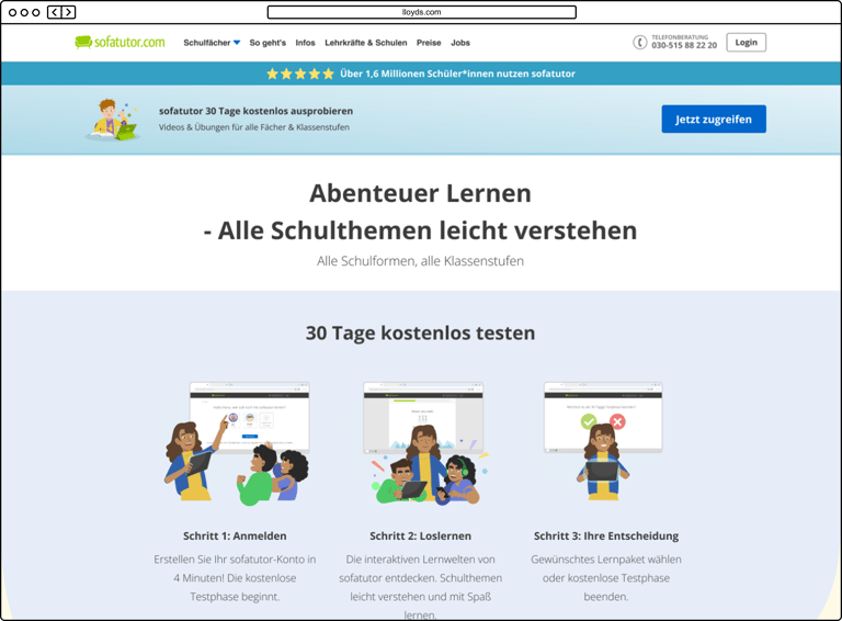 sofatutor.com regularly conducts research to evaluate how effectively the platform supports student learning. The results are presented on a dedicated Infopage that communicates the platform’s impact to prospective users.